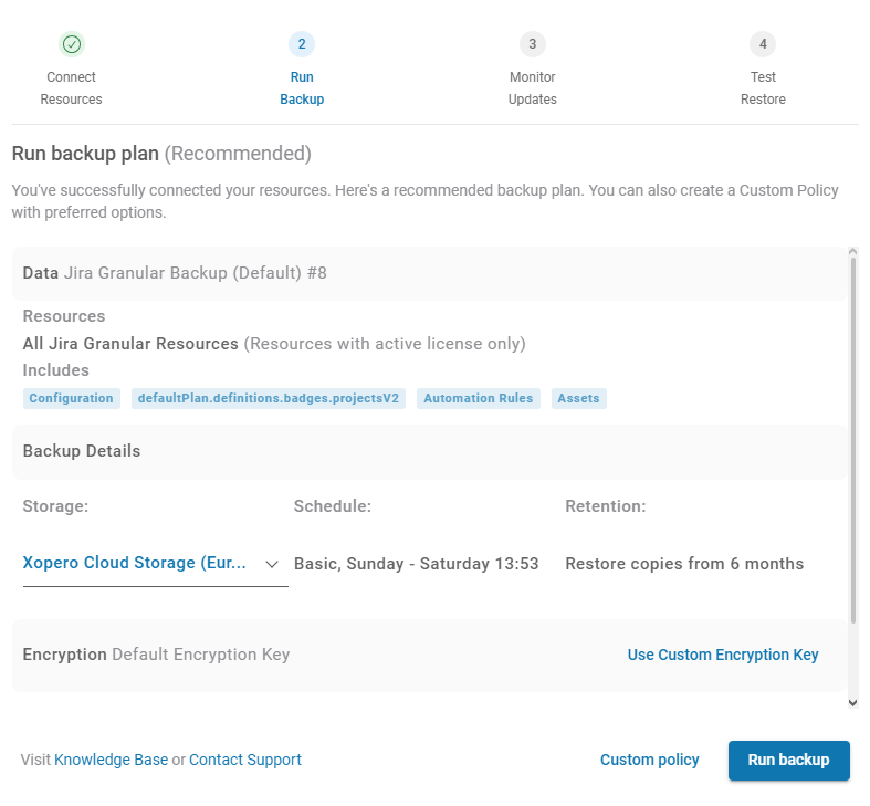 Adding Jira organization to Xopero ONE connects your environment to the platform so you can start protecting its data.