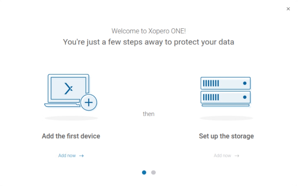 In the initial setup you should add your first device which you want to use to set up the storage. Then, you have to install the backup agent and activate it in Xopero system.