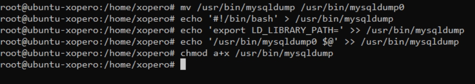 echo '#!/bin/bash' > /usr/bin/mysqldump