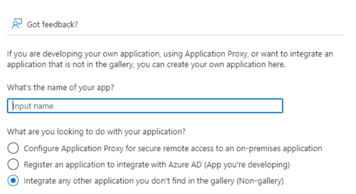 Enter a custom name for the app and select Integrate any other application you don’t find in the gallery (Non-gallery).