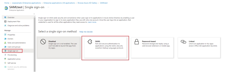 You’ll be redirected to SAML web app settings. Start with setting up a custom name for the app (i.e., XONESAML).