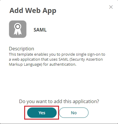Scroll back to top and open the Addons tab, then toggle the SAML2 WEB APP button.