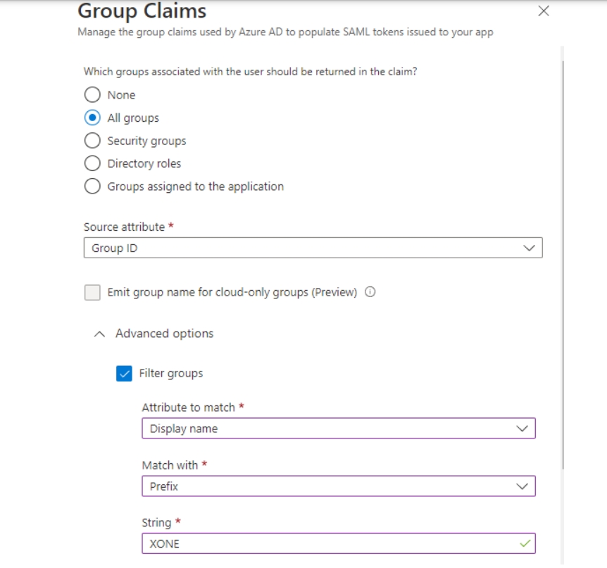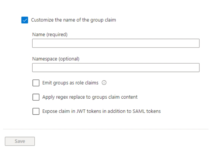 Check the Customize the name of the group claim checkbox. Enter xoperogroup in the Name field and save your settings.
