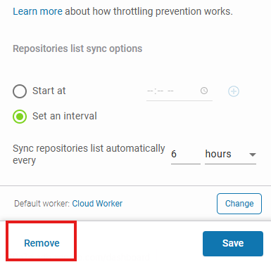 To remove a **DevOps** organization from **Xopero ONE**, click the **Remove** button located at the bottom of the **Edit organization** window.
