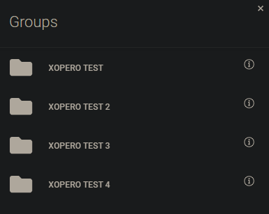 All created groups will be displayed in <img src="https://319733277-files.gitbook.io/~/files/v0/b/gitbook-x-prod.appspot.com/o/spaces%2F0CBTl43C3OO6ySL1DJ6k%2Fuploads%2FPEPOwSodNEmBIPZ0uocl%2Fimage.png?alt=media&#x26;token=e2afbc95-d6a6-4fcc-af73-81a6055e0df1" alt="" data-size="line"> **Groups** menu panel.