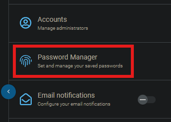 Settings at the bottom of the left-hand menu, then select Password Manager.
