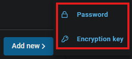 Click the Add new > button, then select Password or Encryption Key.