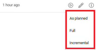 If, during the backup plan creation, you chose to protect your data using the **basic schedule type**, you can select whether a **full** or **incremental** copy will be performed when the backup task is triggered.