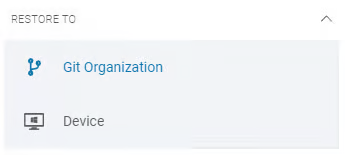 Wybierz cel dla procesu przywracania. Możesz wybrać jedną z przypisanych organizacji z dowolnej usługi Git lub dowolne urządzenie.
