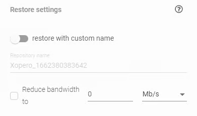 W Ustawieniach przywracania możesz ustawić własną nazwę dla repozytorium, które zostanie utworzone podczas procesu przywracania i ograniczyć przepustowość łącza.