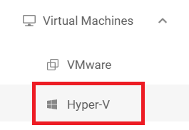 Zaloguj się do XMS, otwórz kartę Maszyny Wirtualne po lewej stronie okna i wybierz Hyper-V z listy.