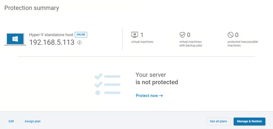 Pobierz i zainstaluj agenta na wszystkich hostach Hyper-V, które chcesz chronić. Po instalacji urządzenie/a pojawi się w prawym górnym rogu w celu aktywacji. Po dodaniu zostanie wyświetlone w karcie Urządzenia i będzie gotowe do ochrony fizycznego sprzętu.