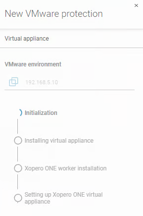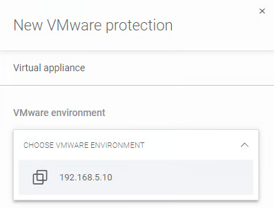 System wyświetli panel Nowa ochrona VMware, w którym możesz wybrać jedno ze środowisk VMware dostępnych w Xopero ONE.