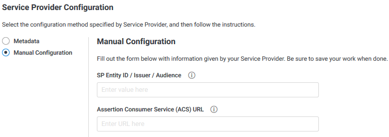 Następnie zjedź niżej do sekcji Service Provider Configuration, ustaw ją na Manual Configuration oraz wprowadź następujące dane: