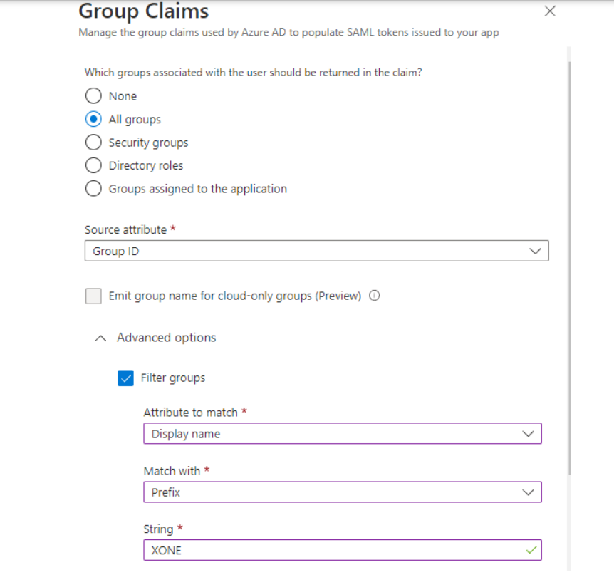 Attribute to match: Display name Match with: Prefix String: XONE