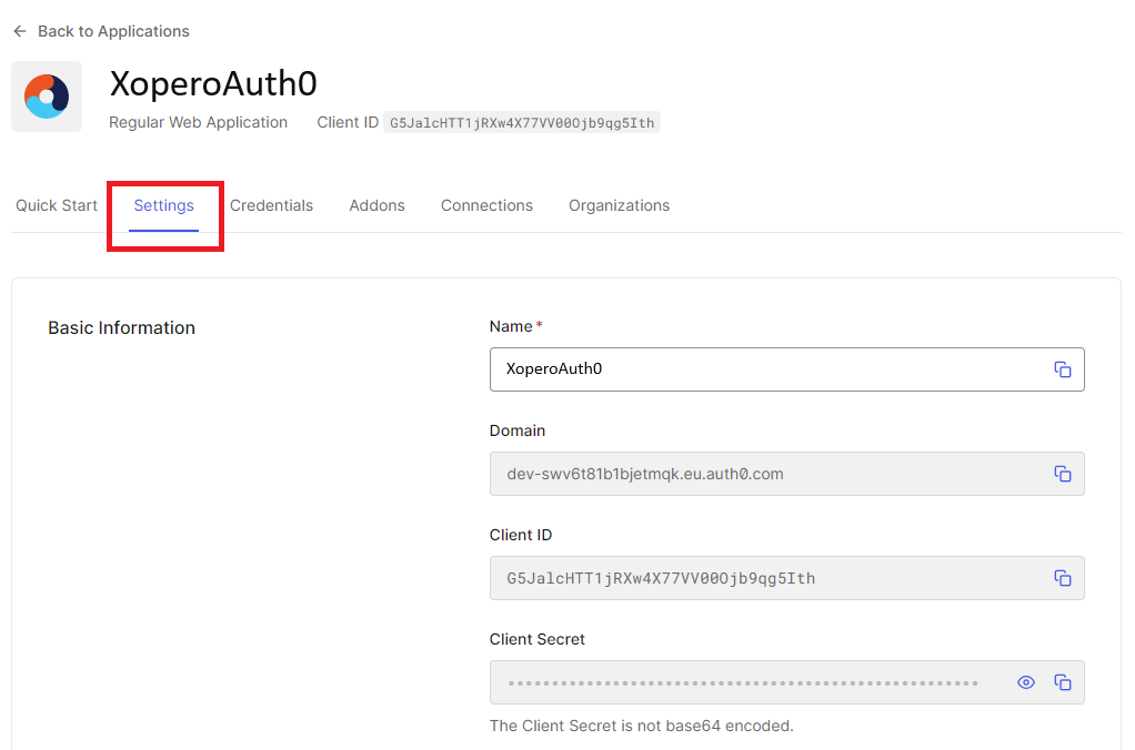 Entity ID: powinno być takie samo jak nazwa ustawiona jako nazwa aplikacji w Auth0 (w tym przykładzie to XoperoAuth0).