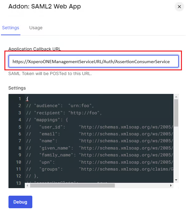 https://XoperoONEManagementServiceURL/Auth/AssertionConsumerService