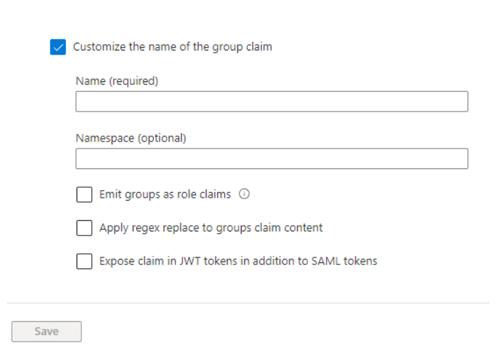 Zaznacz pole Customize the name of the group claim. Wpisz xoperogroup w polu Name i zapisz ustawienia.