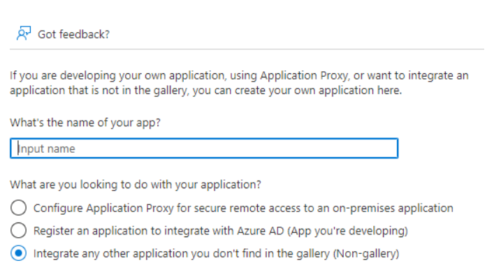 Wprowadź własną nazwę aplikacji i wybierz Integrate any other application you don’t find in the gallery (Non-gallery).