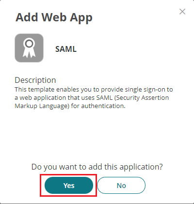 Potwierdź dodanie SAML jako aplikacji sieciowej.