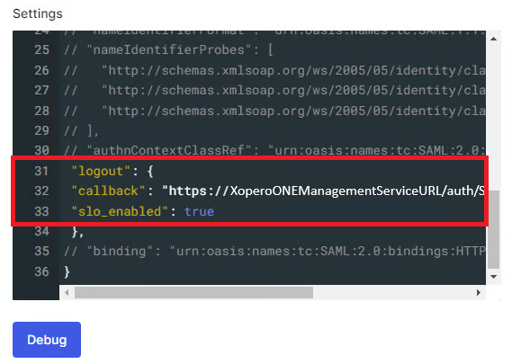 https://XoperoONEManagementServiceURL/auth/SAMLLogoutResponse