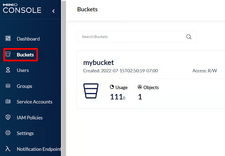 Ustaw URL Serwisu na adres IP swojej konsoli MinIO w formacie http://address:port. Domyślny port MinIO to 9000.