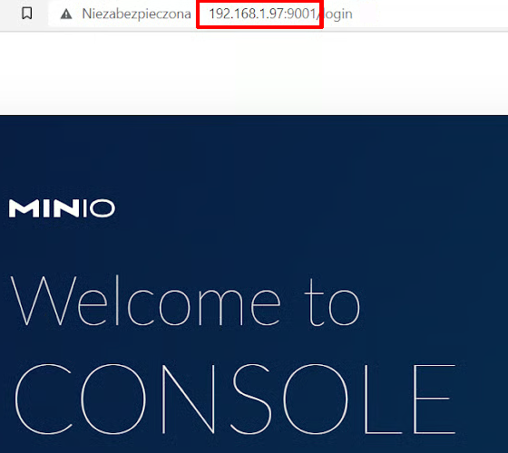 Zarówno ID klucza dostępu jak i tajny klucz dostępu to dane logowania do MinIO