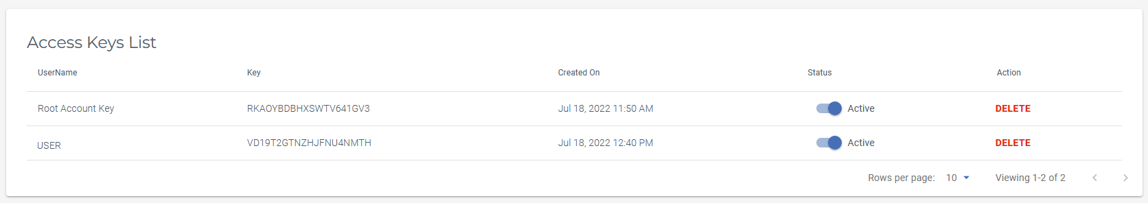 Klucze dostępu są generowane dla każdego konta użytkownika Wasabi. Możesz wyświetlić listę kluczy dostępu, logując się na swoje konto Wasabi i przechodząc do zakładki Access Keys.