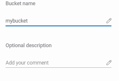 The bucket is created via MinIO web console (Buckets > Create Bucket ➕).