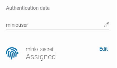Enter your MinIO username in Access key ID and select (or add) a secret access key from the Password Manager.