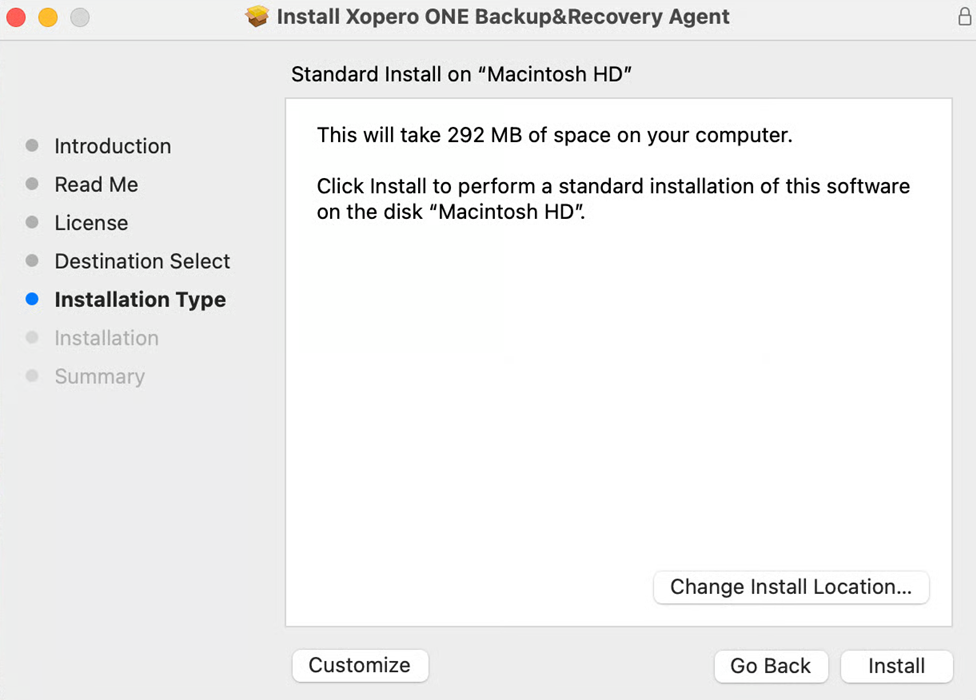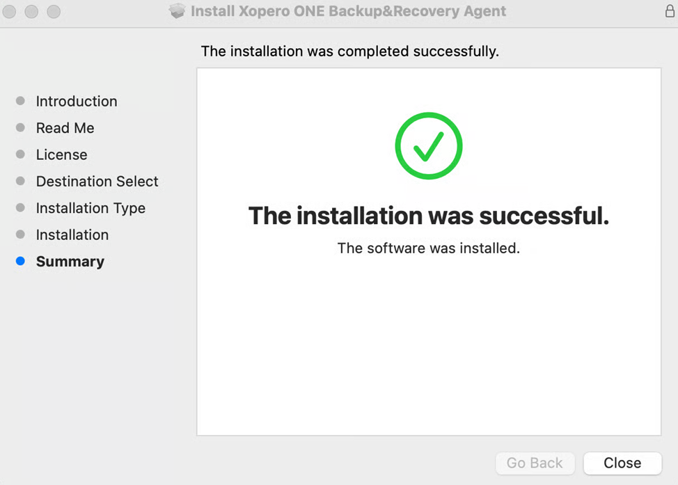 9. Click **Close** to finish the installation. The **Xopero ONE agent** for **macOS** is now successfully updated.