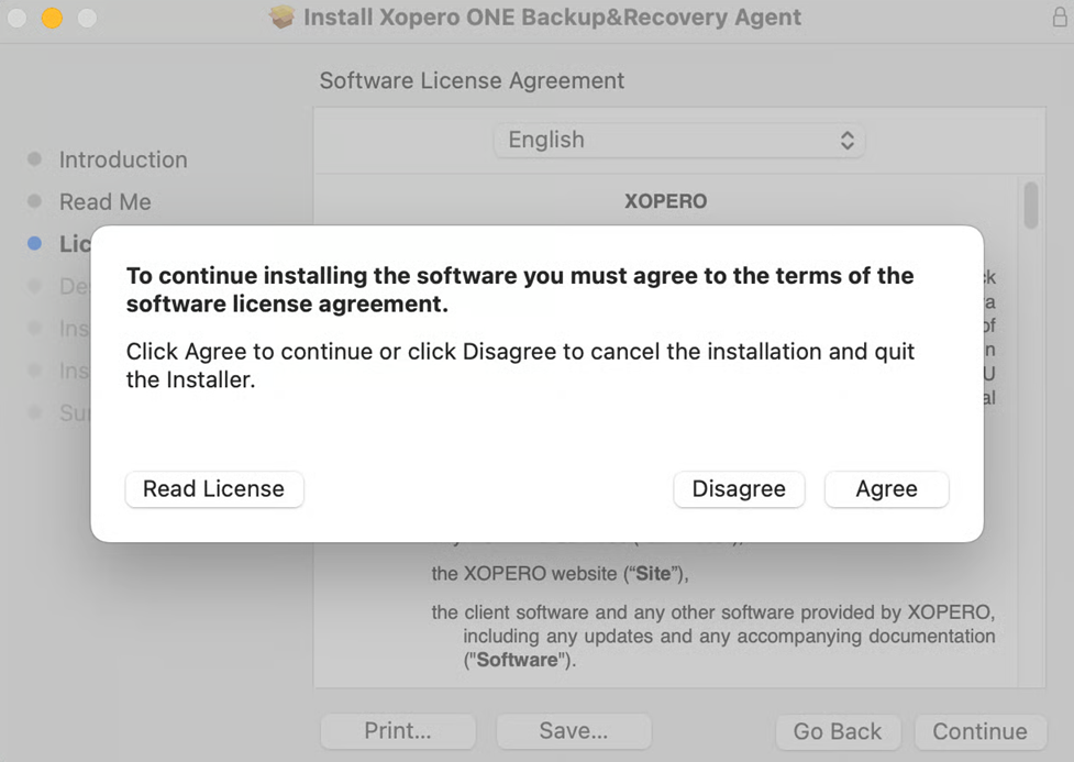 5. Click the **Agree** button to accept the **End-User License Agreement**.